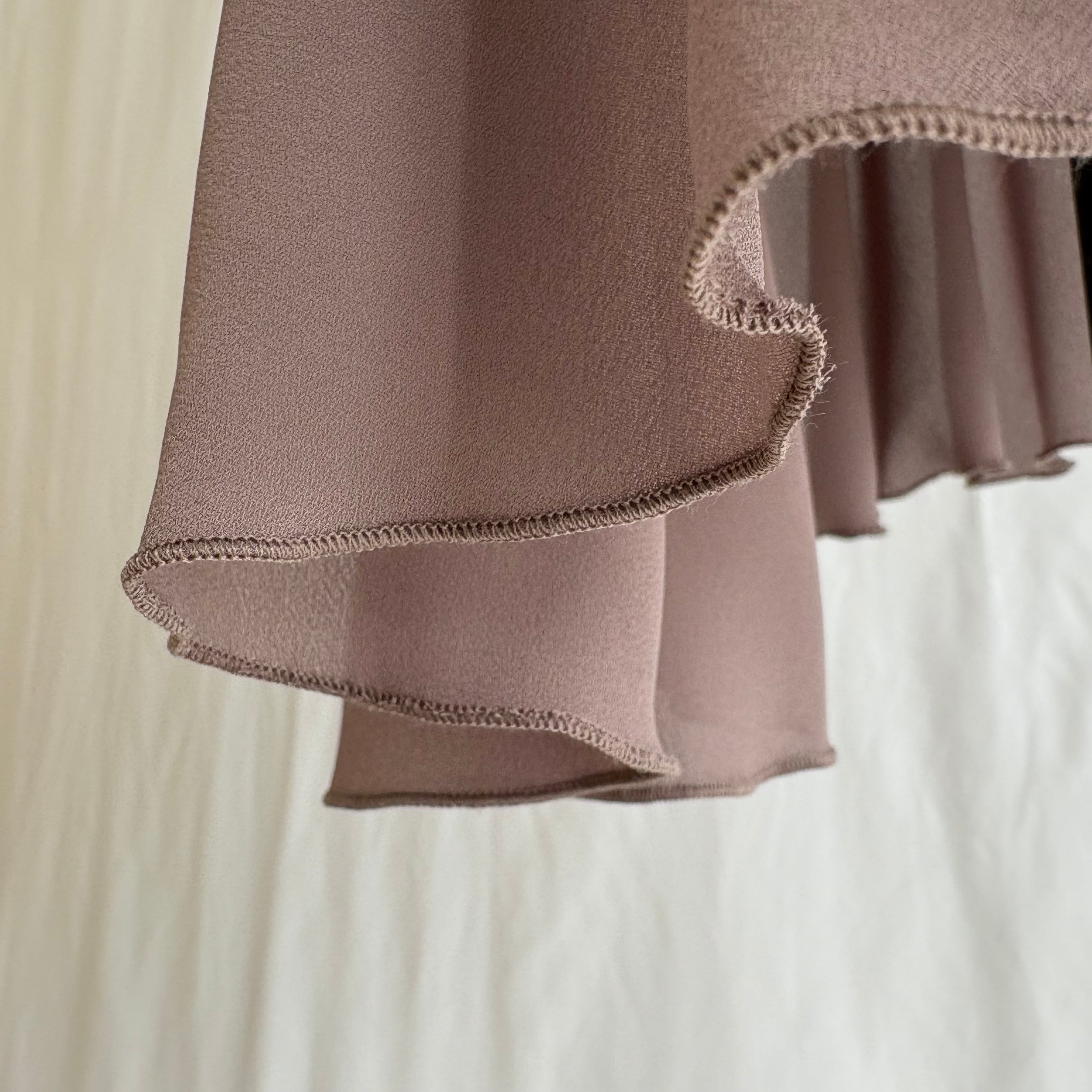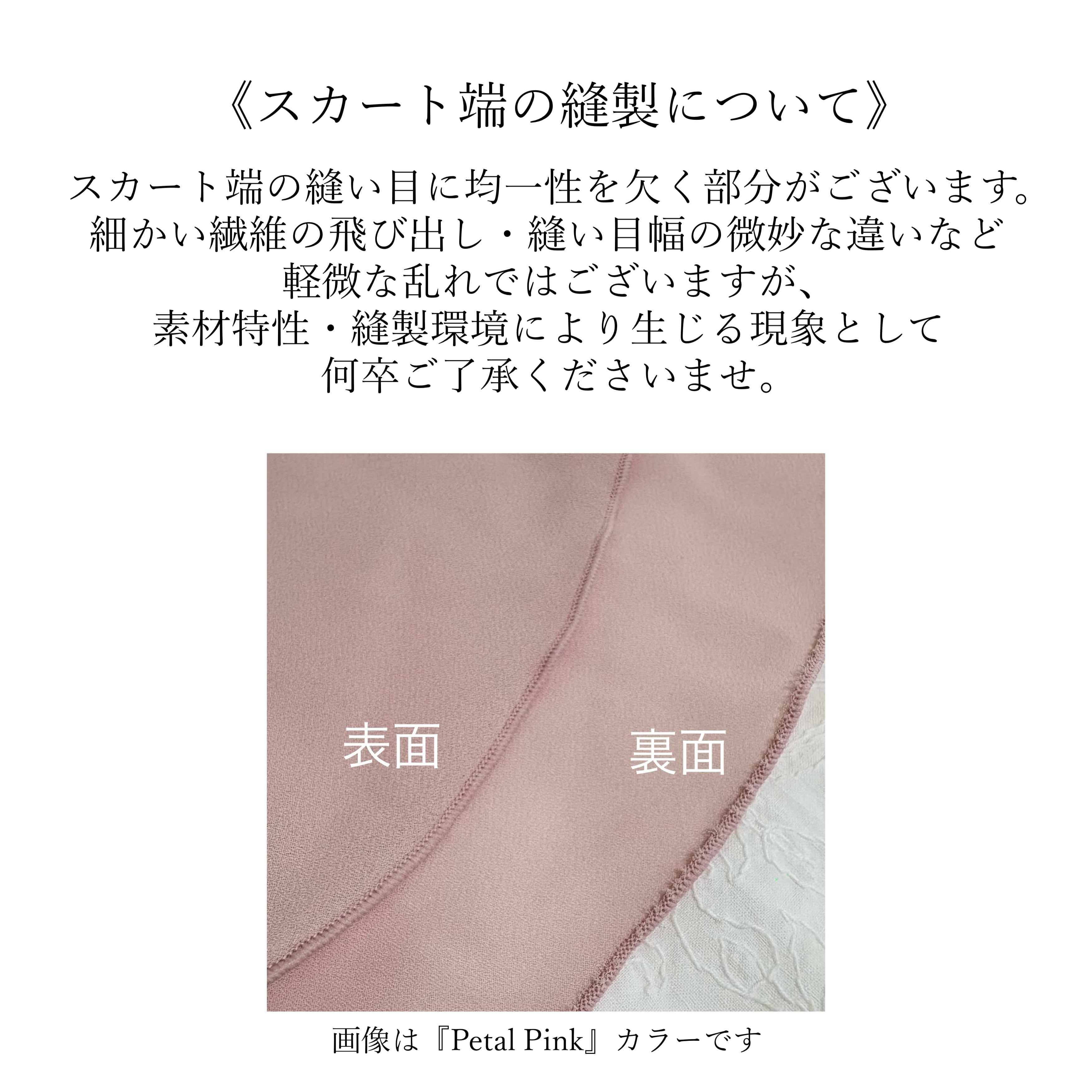 極細繊維を織ったシフォン・ジョーゼットの素材特性および縫製環境により布端の縫い目に均一性を欠く部分がございます。(画像をご参照ください)