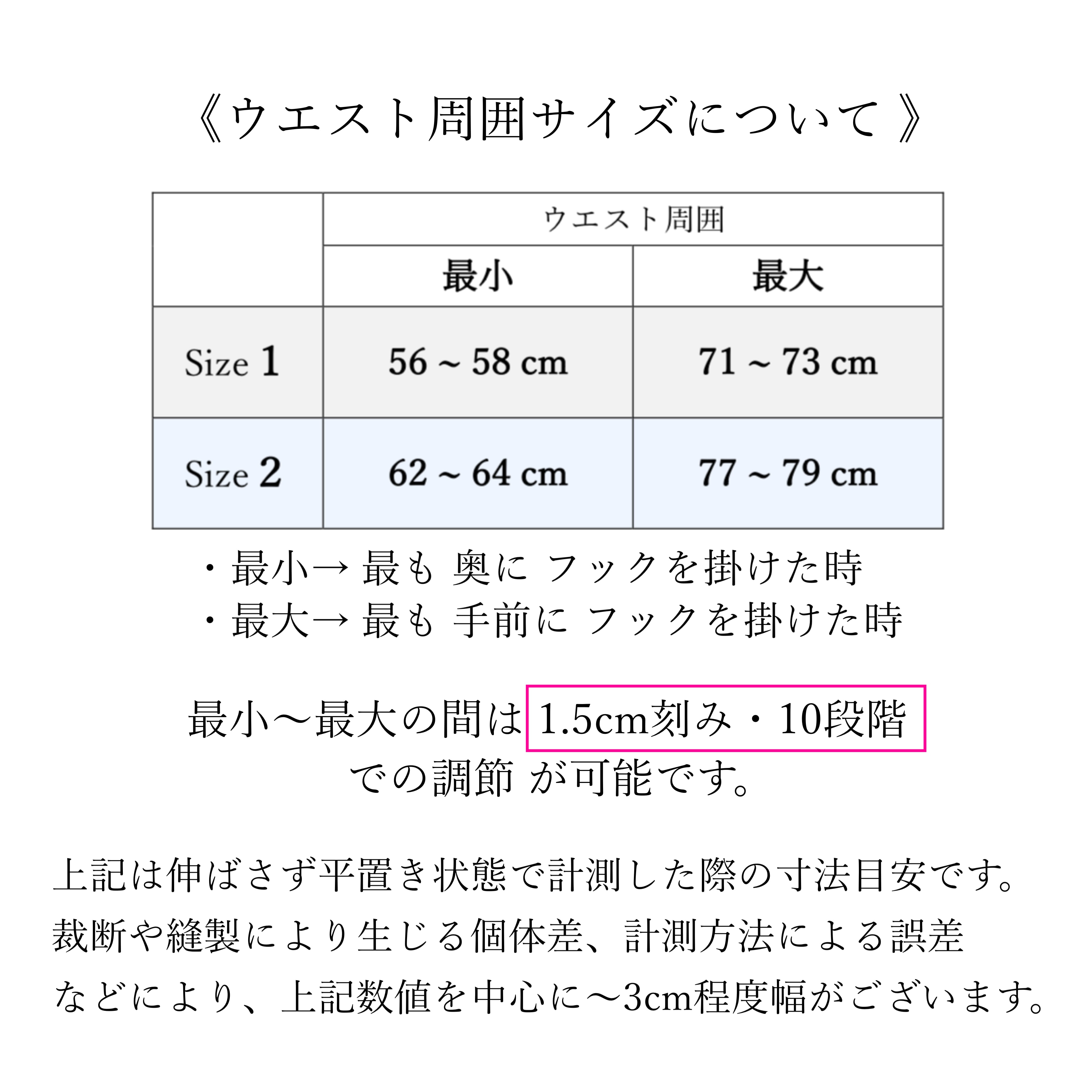 ※1・ウエストは 1.5㎝間隔で10段階の調節が可能です。